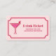 Pink Cocktail Retro Font Wedding Drink Ticket