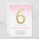 Pink Confetti Party Gold Number Girl 6th Birthday Invitation