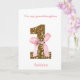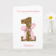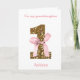 A pretty 1st birthday card featuring a gold glitter number one with a pink coquette bow. Please note there is not actual glitter, but a glitter design effect. You will be able to easily personalize the front with the recipient and the birthday girl's name in a soft pink color. There is a sweet birthday message inside, which can also be personalized. The back features the same gold glitter one and bow where you can add the year underneath it. This would make a sparkly first birthday keepsake for the birthday girl.