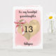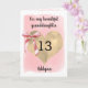 A personalized pink coquette bow and gold heart 13th birthday card for granddaughter, daughter, goddaughter, etc. You can easily personalize the front of this pretty pink 13th birthday card with the recipient and her name. The inside card message can also be edited if wanted. This would make a sweet thirteenth birthday card keepsake for her.
