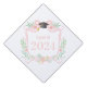 This graduation cap topper design features a watercolor crest design with a pink bow and graduation cap florals with a place to add a graduation year.