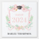 This graduation yard sign features a watercolor crest design with a pink bow and graduation cap florals with a place to add a graduation year. You can personalize with a name.