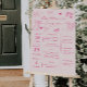Cute bow theme kid's birthday party milestone board featuring hand drawn illustration of pink ribbons and hearts. List all the important birthday stats, fun and quirky things they've learned, and the things they have grown to love!