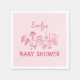 A Pink Coquette Modern Hand Drawn Baby Shower party decor napkin design typically blends whimsical, playful elements with a contemporary aesthetic. The size is a standard and popular choice, however other formats are available.