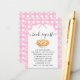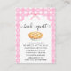 This charming book request enclosure card is designed as an insert to accompany baby shower invitations. It features a cozy illustrated apple pie on a soft pink gingham background with delicate white floral accents and a sweet coquette bow at the top. The elegant script title and rhyming message encourage guests to bring a meaningful book instead of a traditional greeting card, creating a thoughtful keepsake for the parents-to-be. Perfect for dessert-themed or pie-inspired baby showers, this timeless pastel insert can be used for celebrations in any season.