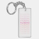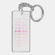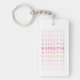 This personalized keychain features a modern typography design with pink and coral text. Customize the text with your name or other text.