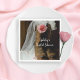 Personalize the casual yet classy Pink Country Rose and Cowboy Boots Bridal Shower Paper Napkins with the name of the bride to be. These rustic chic custom ranch style disposable wedding shower napkins feature a quaint floral photograph of a pair of brown leather cowboy boots filled with a pink rose flower blossom and a white bridal veil with a weathered brown barn wood background. Perfect for your informal farm or barn party celebration event.