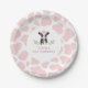 This adorable paper plate features a sweet baby cow with a flower on her head and a playful soft pink cow pattern.