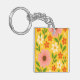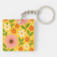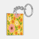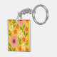 Pink, cream & Orange Flowers with Green Leaves Keychain