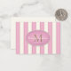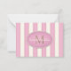 Pink & Cream Stripes Bronze Monogram Custom Note Card