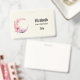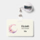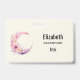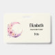 Personalized name badge with a lovely illustration featuring a soft pink and purple crescent moon. Pretty pink and yellow wildflowers adorn this celestial body.
