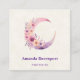 Square business card with a lovely illustration featuring a soft pink and purple crescent moon. Pretty pink and yellow wildflowers adorn this celestial body.