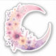Contour sticker with a lovely illustration featuring a soft pink and purple crescent moon. Pretty pink and yellow wildflowers adorn this celestial body.