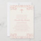 Plain white envelopes are included with paper invitations and will come to fit the invitation size you select. If you don’t need the envelopes, you may choose to not receive them by selecting the dropdown below "Envelopes" and choosing "None." If you’d like to have a design on your envelopes, you can browse all of these available envelopes to find the design that complements your Pink Cross Baptism Christening Invitation.