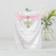Pink Cross First Communion White Satin Glitter Invitation