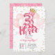 Pink Crown Balloon Third Birthday Invitation