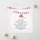 This baby design is a precious way to welcome and announce your new bundle of joy! This design has a bright white background with pink polka dots. Across the top there is a pink and white pennant style banner. In the center, there is a fun cupcake with bright pink icing and a fun pink peppermint candy. On the front is a sweet saying, "Love, Joy, and wonderful dreams all the sweet things a new baby brings..." On the back there is a place for all of your details - Baby's Name, date of birth, weight and length.