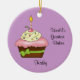 This cupcake ornament would be great for the baker in the family or your friend. The text can be changed to your own saying along with the name on the bottom. The background color can also be chnaged to other colors by using the EDIT dropdown menu and selecting Background. This allows you to make this available for male and female bakers.