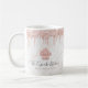 Present your best self to your clients, with this elegant, sophisticated, simple, and modern custom name coffee mug. A sparkly, rose gold cupcake, glitter drips, and soft gray handwritten typography overlay a white marble gold veined background. Personalize with your full business name or other info. Makes a chic, professional, and stylish statement while you relax with your favorite beverage. Matching business cards are also available: