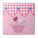 This Pink Cupcake Tile features a mouse drawn cupcake with a pink gingham and blue heart swag. Frame it or make it a Jewelry box!