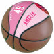 Pink Custom Basketball with Team Name Number. The design has a vivid pink basketball on the side and pink background for a girl basketball player. Perfect gift for girl basketball player, teammates, coach,... Personalize it with your basketball team name, player number and player name