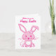 Pink cute bunny rabbit Easter card