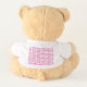 This little bear looks well-made and is nice and soft. Got his shirt inscribed to my great-grandson, to be born in December. The text I chose to use fit, with no room to spare! The printing was clean and crisp. The editing tools are easy to use.