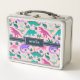 Pink | Cute Colorful Dinosaur Pattern Kids Name Metal Lunch Box