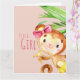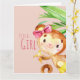 Pink Cute Monkey Baby Girl Announcement