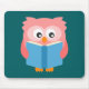 Pink cute reading owl mouse pad