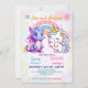Pink Cute Unicorn dinosaurs rainbow Birthday party Invitation