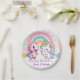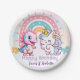 Pink Cute Unicorn dinosaurs rainbow Birthday party Paper Plates
