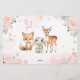 Watercolor pink gold winter wonderland, cute woodland animals baby girl shower advice and wishes for parents-to-be, baby shower games, stationery cards.
