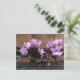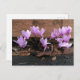 Postcard with photo of pink cyclamen hederifolium flowers in Autumn.