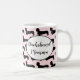 Dachshund Mommas gather 'round! We love dachshunds and we are proud! Let's show off our love with this adorable pink mug! Scripted with "Dachshund Momma" in additional to the cute light pink background and silhouettes of dachshund pattern, this mug is a knock out.