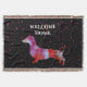 Pink dachshund Watercolor Art , welcome home interior decor blanket with dog.
