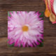 Ceramic tile that features the photo image of a big, pink Dahlia bloom with yellow center. A lovely, floral design! Select your tile size. Makes a pretty kitchen trivet!
