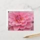 Postcard with photo of large waterlily type dahlia flower with pale pink petals