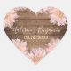 Pink Dahlia Flower Rustic Wood Wedding Date Heart Heart Sticker