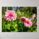 The bright pink of these dahlia flowers really popped against the green foliage and blue sky. This variety is known as "Otto's Thrill" and is also known for its very large flowers! This photo is also featured as the widescreen wallpaper "Pink Dahlias (Otto's Thrill)" from MLeWallpapers.com. Check out our store for more bright and colorful photos of a variety of other flowers.