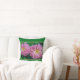 ADD A FLORAL ACCENT TO YOUR SUNROOM WITH THIS THROW PILLOW FEATURING TWO LARGE PINK DAHLIAS. SHOWN WITH GREEN BACKGROUND (CUSTOMIZABLE).