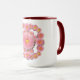Pink daisy flowers mandala alike art photo mug. Add your custom text and background color.