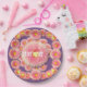 Pink daisy flowers photo paper plates. Add your custom text and background color.