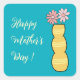 Cute teal Mother's Day square stickers with a cheerful yellow vase filled with two pretty pink daisies . Personalize them with your own text .
