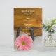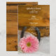 Customize the rustic chic Pink Daisy, Pearls and Horseshoe Country Western Wedding Menu with the details of the meal that you will serve at your casual yet classy ranch style bridal shower luncheon, post wedding brunch or barn party marriage reception dinner when you add the salad or first course, entree or second course and dessert or third course. This charming custom equine theme wedding menu features a floral photograph of a light pink gerber daisy flower blossom, rusty horseshoe, pearl necklace with a white bridal veil and a brown weathered barn wood background.