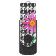 Pink Daisy on black and white pattern.