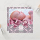 Plain white envelopes are included with paper invitations and will come to fit the invitation size you select. If you don’t need the envelopes, you may choose to not receive them by selecting the dropdown below "Envelopes" and choosing "None." If you’d like to have a design on your envelopes, you can browse all of these available envelopes to find the design that complements your Pink Damask Baby Girl Photo Christening Invitation.