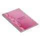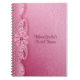 Elegant bridal shower all purpose notebook done in lovely pink on pink damask graphics. A pretty pink swirly border, on the left side has graphics of a pink ribbon bow, in the middle. Text in a burgundy color is fully customizable to read what you want. Perfect to have bridal shower guests to sign in with, list of gifts, and messages to the bride from guests.