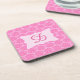 Pink Damask Custom Monogram Initial Drink Coaster