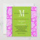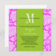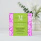 Pink Damask Green Monogram Wedding Invitation